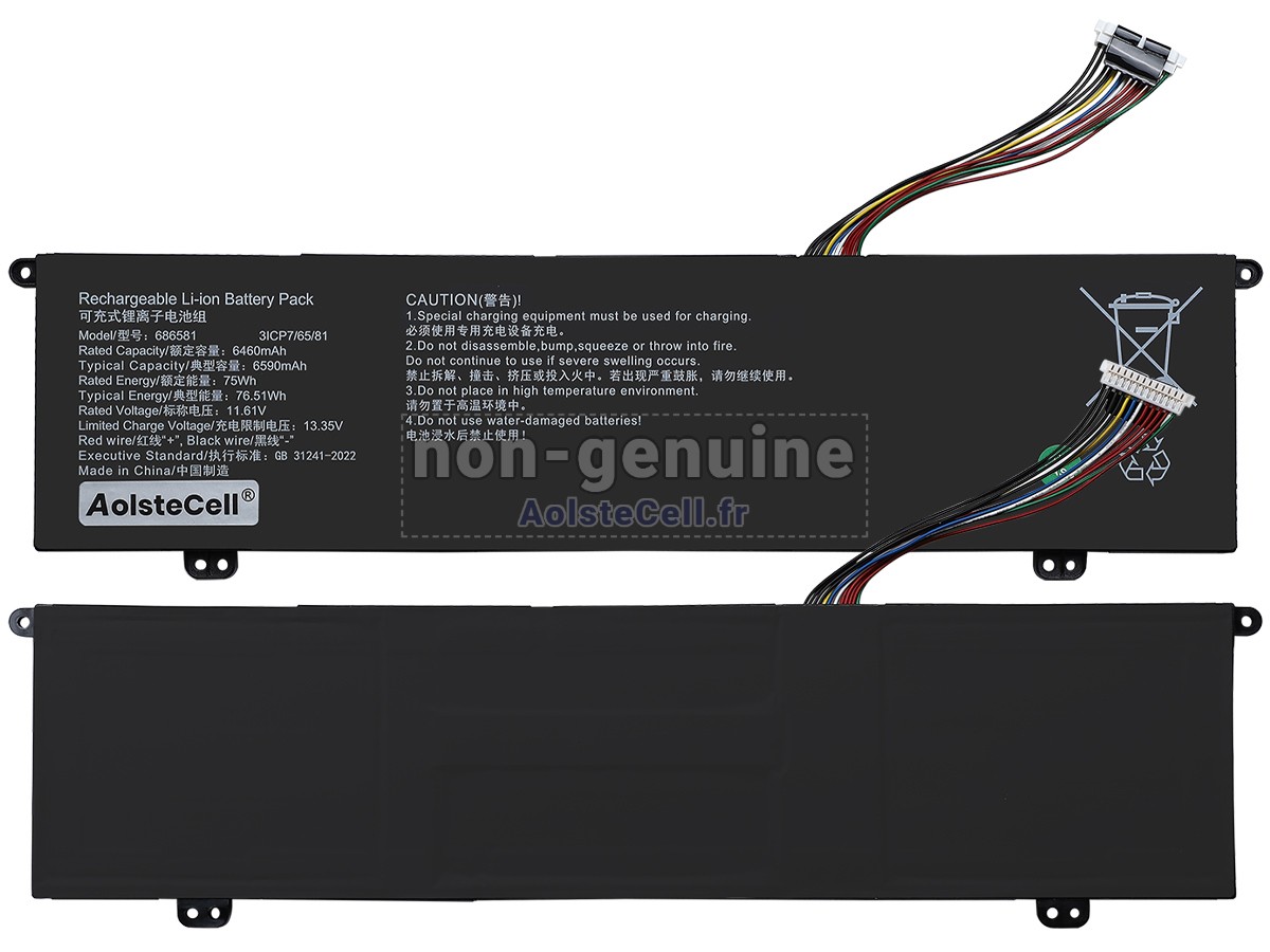 Batterie de haute performance pour AolsteCell 686581 3 cellules, 75Wh, 11.61V
