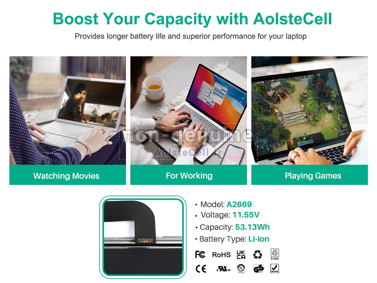 Toutes les batteries vendues sur AolsteCell.fr sont des pièces de rechange. AolsteCell.fr n'est pas affilié aux fabricants d'origine. Toutes les marques ou noms de modèles listés ci-dessus sont identifiés à des fins de compatibilité uniquement.