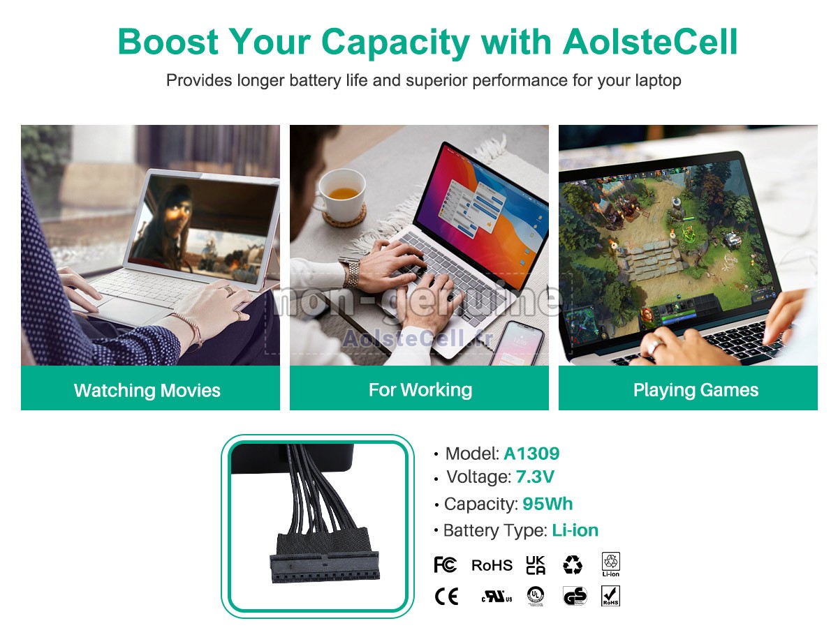 Toutes les batteries vendues sur AolsteCell.fr sont des pièces de rechange. AolsteCell.fr n'est pas affilié aux fabricants d'origine. Toutes les marques ou noms de modèles listés ci-dessus sont identifiés à des fins de compatibilité uniquement.
