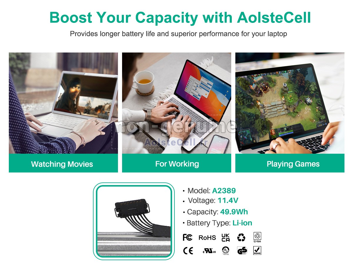 Toutes les batteries vendues sur AolsteCell.fr sont des pièces de rechange. AolsteCell.fr n'est pas affilié aux fabricants d'origine. Toutes les marques ou noms de modèles listés ci-dessus sont identifiés à des fins de compatibilité uniquement.