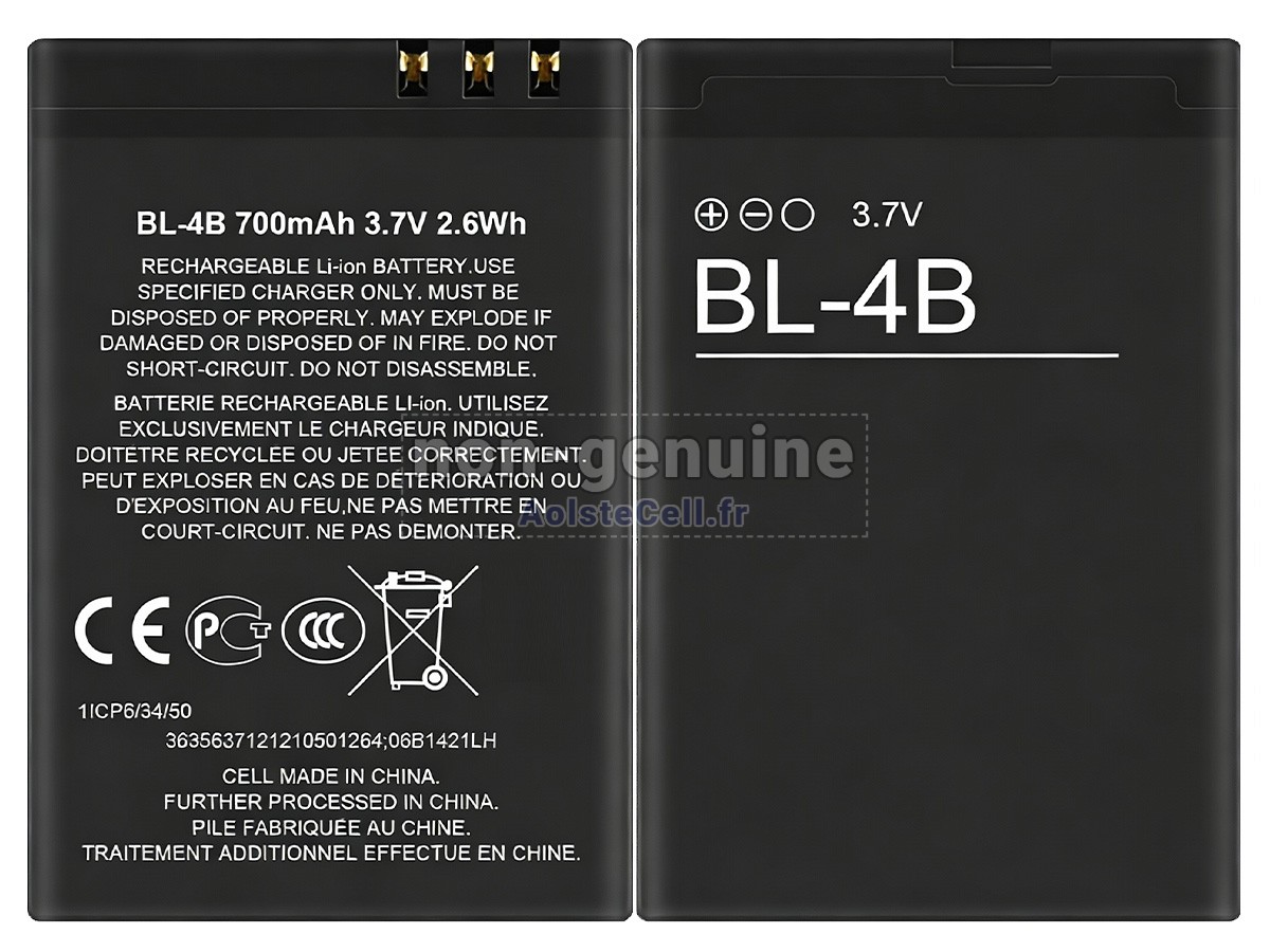 Batterie de haute performance pour Nokia 7500 Crystal Prism 1 cellules, 700mAh, 3.7V