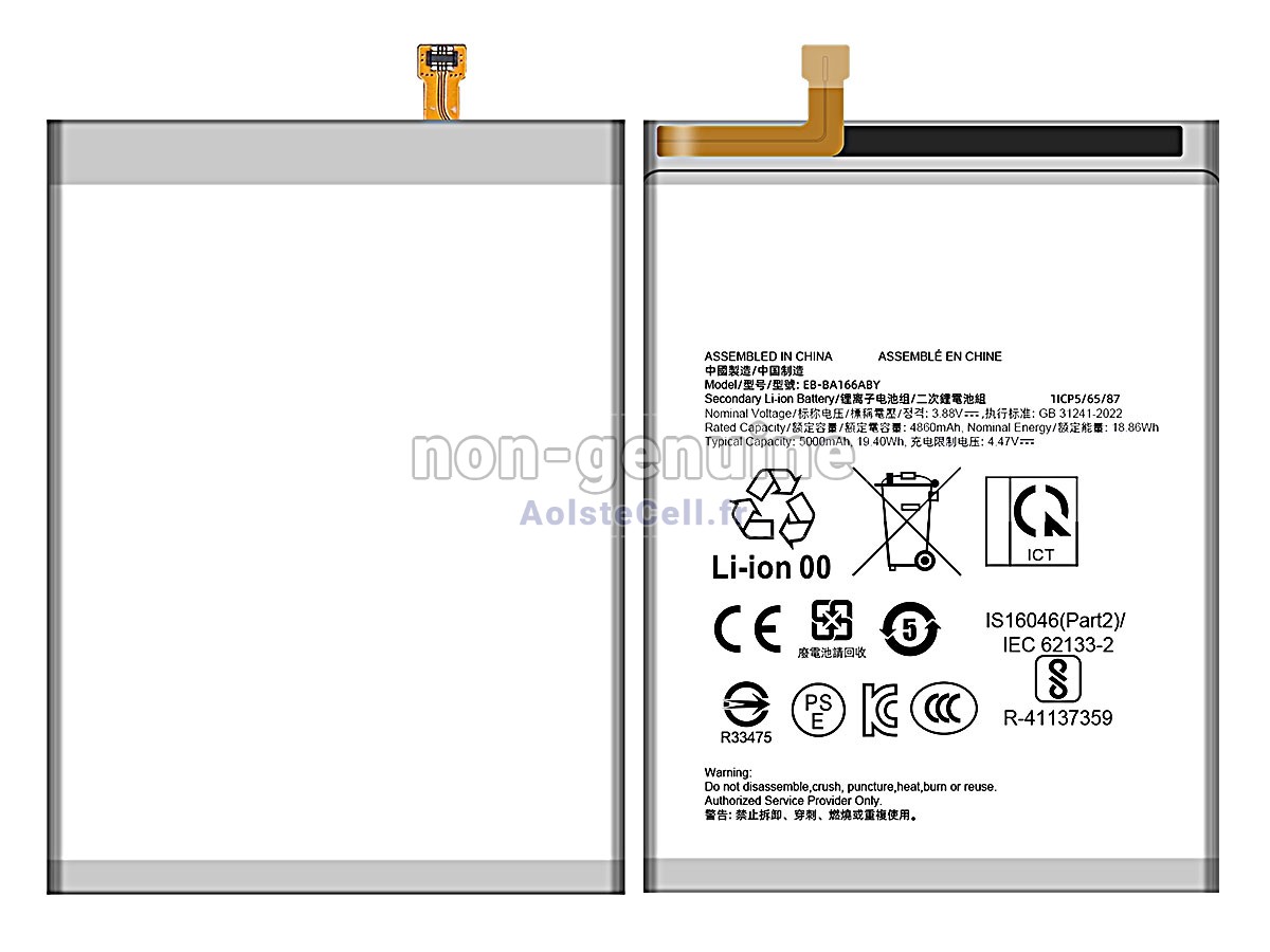 Pour des raisons de sécurité, les coques de nos batterie Galaxy A16 SM-A166P/DS sont fabriquées en ABS, un matériau très résistant à l'usure. Ce matériau est non seulement capable de résister efficacement aux frottements et aux chocs externes, empêchant la batterie de subir des dommages physiques et évitant ainsi les fuites d'électrolyte, mais il possède également d'excellentes propriétés de résistance à la chaleur, ce qui permet de maintenir la stabilité dans des environnements à haute température. La batterie est équipée de plusieurs circuits de protection, notamment contre les courts-circuits, la surchauffe et la surtension, ainsi que de plus de dix types de circuits de protection pour garantir la sécurité des personnes et des biens des clients.